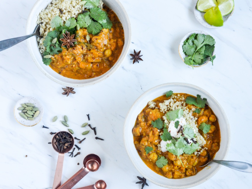 - When finished cooking, add some cilantro (save some for garnish). Serve with the quinoa and optional coconut yogurt or squeeze of fresh lime. Makes awesome leftovers for up to a week in the fridge!