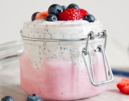 - Spoon in berry mousse and top with chia mousse